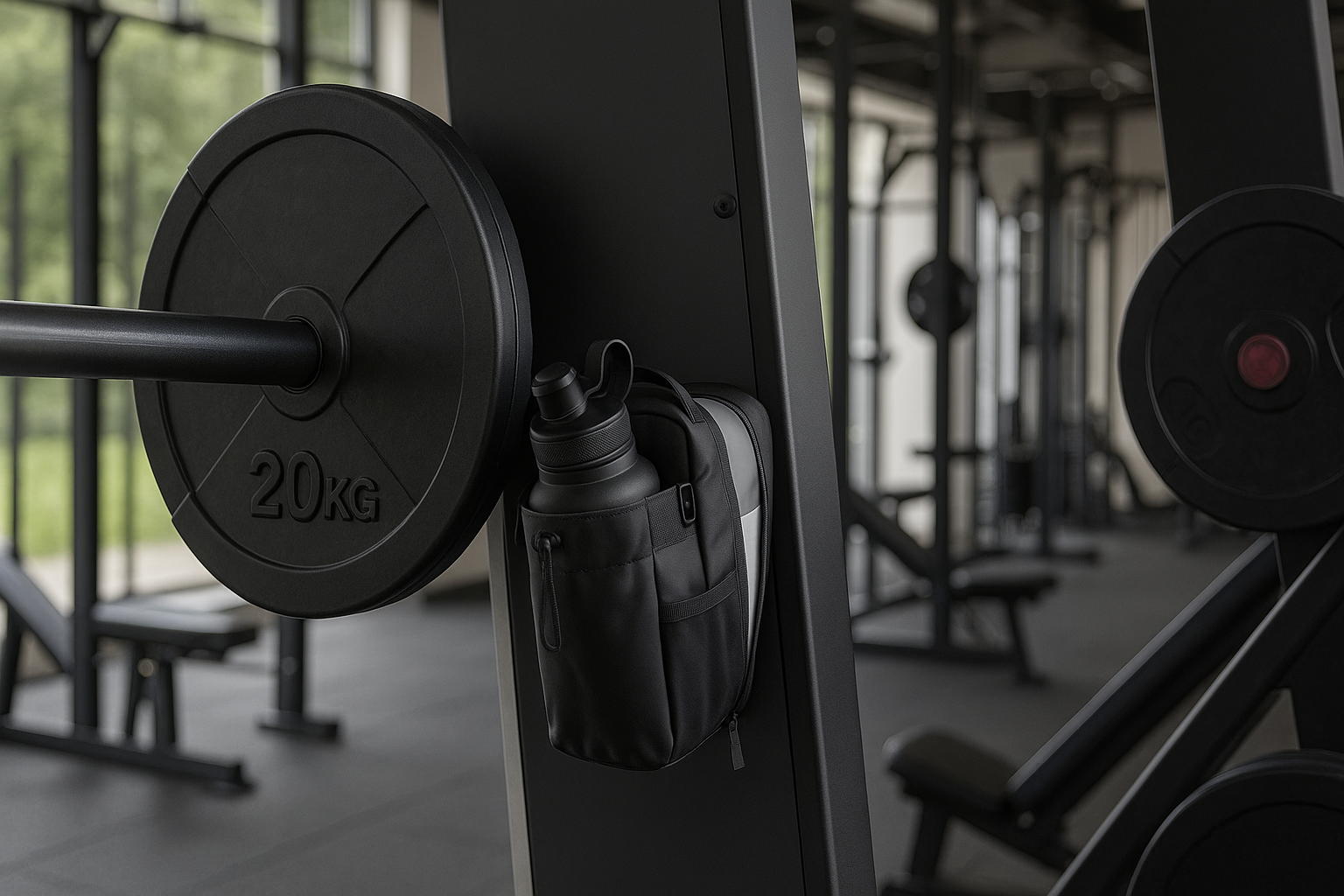 Conçue pour la salle : se fixe aux machines, garde gourde, téléphone et clés rassemblés à portée de main. Plus d’affaires au sol, plus d’allers-retours au casier, séance plus fluide.