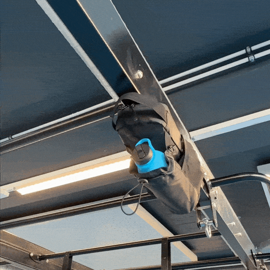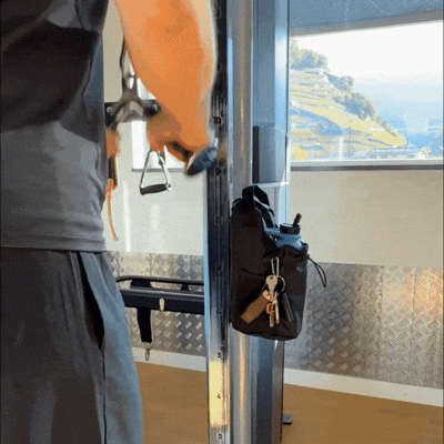Conçue pour la salle : se fixe aux machines, garde gourde, téléphone et clés rassemblés à portée de main. Plus d’affaires au sol, plus d’allers-retours au casier, séance plus fluide.